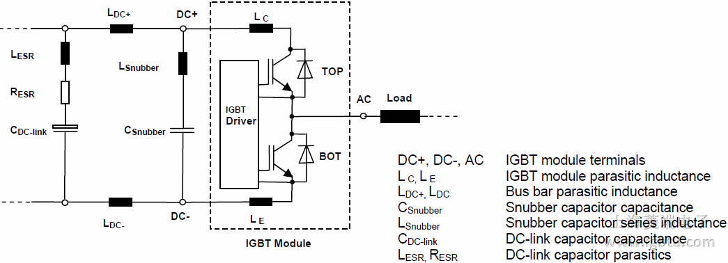 Fig. 3 Equivalent circuit diagram of IGBT module connected to DC-link and snubber capacitor
